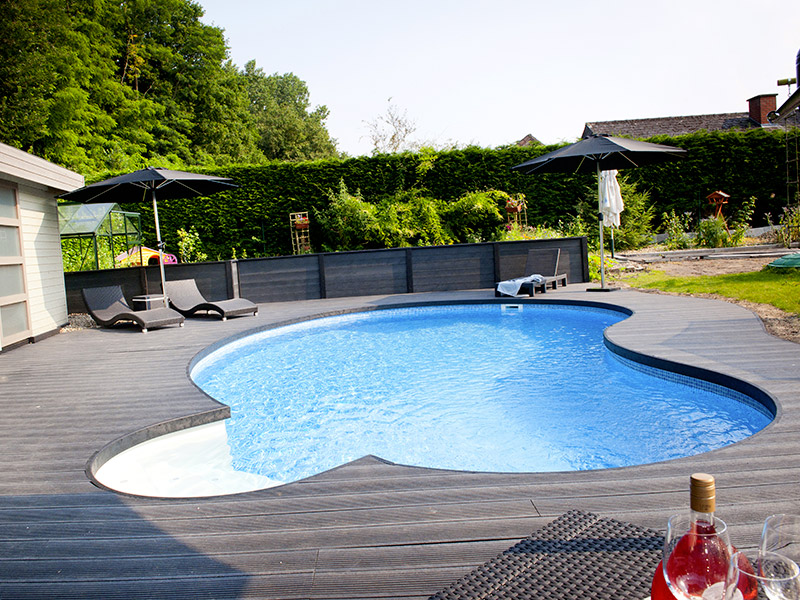 Parmi nos piscines haricots, la piscine Adele avec son escalier Pacio est le modèle lounge de notre gamme. Equipé de buses balnéo, il est idéal pour se prélasser après une longue journée. Créez un espace de loisirs convivial au cœur de votre jardin, qui fera plaisir aux petits comme aux plus grands.