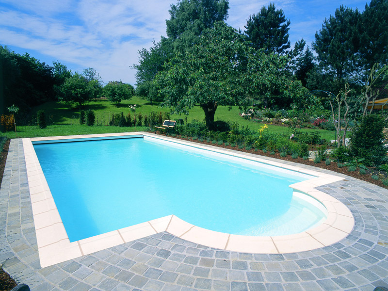 Een rechthoek met strakke lijnen met de pure traditie van de "Roman" trap achteraan het zwembad. Carla zal in de smaak vallen van de meest nostalgische onder ons.